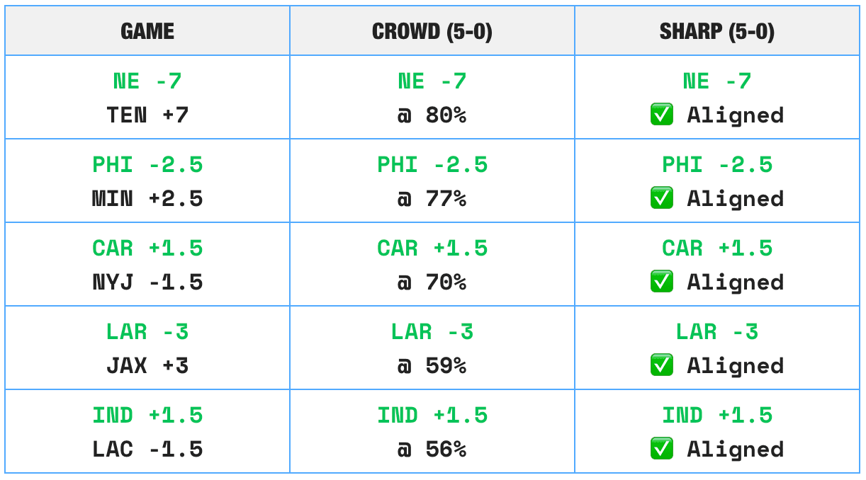 ✅ Spot the aligned bets (when the crowd and the sharp bettors agree).